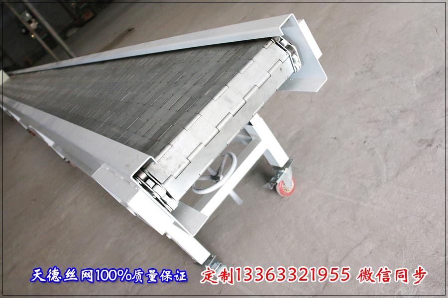 3、輸送效率高,物料在鏈板輸送機機槽內(nèi)呈整體流動,所以較小機槽空間也可以輸 送大量物料,流水線輸送設(shè)備外形尺寸相應(yīng)較小。 我們實力非凡,定當不同,幾十種產(chǎn)品暢銷,不銹鋼輸送機的規(guī)格齊全,結(jié)構(gòu)形式多,我們與多家知名企業(yè)合作 ,以價值取勝以品質(zhì)說話!我公司有豐富的制造經(jīng)驗,同等質(zhì)量的不銹鋼輸送機我們成本合理,深厚業(yè)界的好評!