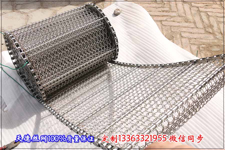 今天河北天德絲網(wǎng)制品有限公司不銹鋼網(wǎng)帶就給大家介紹: 面食在生產線中一般進行烘干比較多,因此在烘干面食的時候我們要采用透氣性好的輸送網(wǎng)鏈,一般透氣性好的輸送網(wǎng)鏈有鏈條輸送帶、鏈板輸送帶、乙型輸送帶、雙旋輸送帶、螺旋型輸送帶等這幾種形式,其中雙旋輸送帶和螺旋型輸送帶也叫做鏈條輸送帶,不同的是在根據(jù)使用的情況可以不加裝兩側的鏈條,直接用滾筒帶動傳送。 鏈條式不銹鋼網(wǎng)帶采用鋼絲編織、鋼桿和鏈條的鏈接組裝而成,根據(jù)要烘干的面食的大小定制孔徑的大小,孔越大烘干速度越快,當然也的保證每米輸送帶上面的載重量,孔越密承載能力越高。鏈板式不銹鋼輸送帶采用不銹鋼板材沖壓成型,使用在烘干行業(yè)中,要在鏈板的表面進行打孔,打孔直徑會根據(jù)面食的大小決定,孔越大烘干速度越快,當然孔越大承載能力越差。