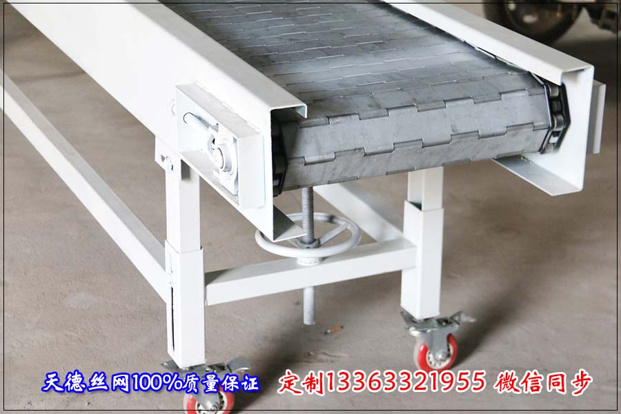該輸送機結構復雜,外形規(guī)格尺寸較大,需用添加驅動裝置,固定式拉緊裝置如螺旋拉緊,用于短距離網帶輸送機; 固定式拉緊結構簡單,但是由于不銹鋼輸送帶的彈性變形和塑性伸長會引起不銹鋼輸送帶張力降低,可能導致不銹鋼輸送帶在驅動滾筒上打滑。 重錘式拉緊結構實用,能保證不銹鋼輸送帶在各種工況下具有足夠大的恒定張力,并且重錘拉緊可使拉緊力方向保持向下,能防止不銹鋼輸送機跑偏,故拉緊裝置應優(yōu)先選用重錘拉緊。 雙向不銹鋼網帶輸送機是普通網帶輸送機的基礎上。用來減少輸送網帶數量及轉載環(huán)節(jié),節(jié)省投資。