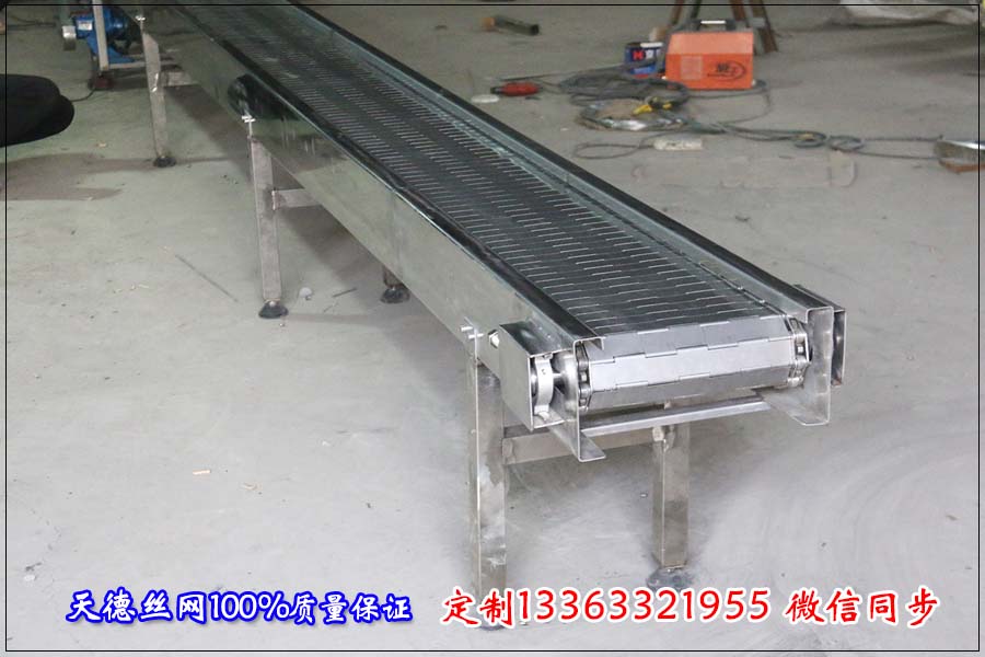 名稱:鏈板輸送機 材質:碳鋼 規(guī)格:長2.5米,使用寬度200mm 機身板厚2mm 鏈板:節(jié)距38.1mm 板厚1.5mm 串桿6mm 刮板高20mm 間隔300mm一個 。
