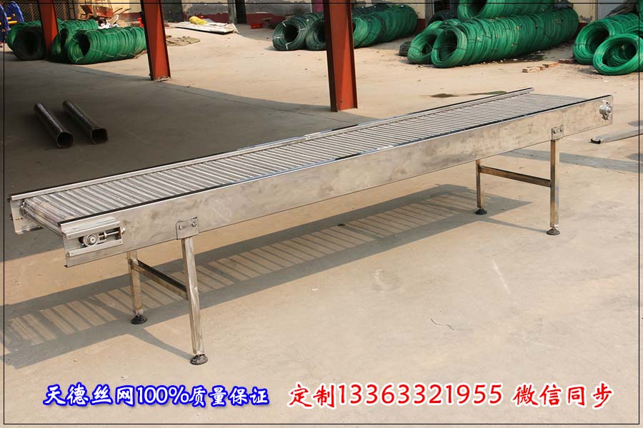 輸送形式有:水平直線輸送、提升爬坡輸送、轉(zhuǎn)彎輸送等多種輸送形式,根據(jù)需要可以在不銹鋼輸送帶的橫截面上焊擋板、鏈條兩側(cè)加裝擋板等附件,能滿(mǎn)足各種輸送行業(yè)的要求。 鏈板輸送機(jī)以標(biāo)準(zhǔn)頂板鏈為承載面,由馬達(dá)減速機(jī)做為動(dòng)力輸送,輸送帶在專(zhuān)用的導(dǎo)軌中運(yùn)行,根據(jù)生產(chǎn)工藝流程的不同鏈板可分為轉(zhuǎn)彎、直線或提升型,還可實(shí)現(xiàn)自動(dòng)輸送線、分別包裝流水線等。