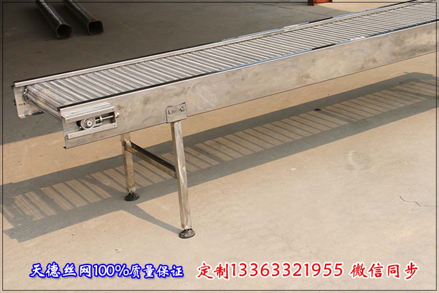 一臺實(shí)用的網(wǎng)帶輸送機(jī)它長度、寬度等參數(shù)都是有一定比例關(guān)系的一般來講網(wǎng)帶輸送機(jī)的寬度不能超過2米,長度不能超越30米。如果輸送物料體積大、密度大那就要在網(wǎng)帶下方加裝軌道支撐;如果輸送線比較長的話把網(wǎng)帶輸送機(jī)分節(jié)來制作而不能做成一條輸送線,因?yàn)榫W(wǎng)帶輸送機(jī)超過30米的話輸送網(wǎng)帶在牽引力下延伸率太大,造成輸送機(jī)脫軌或者跑偏。